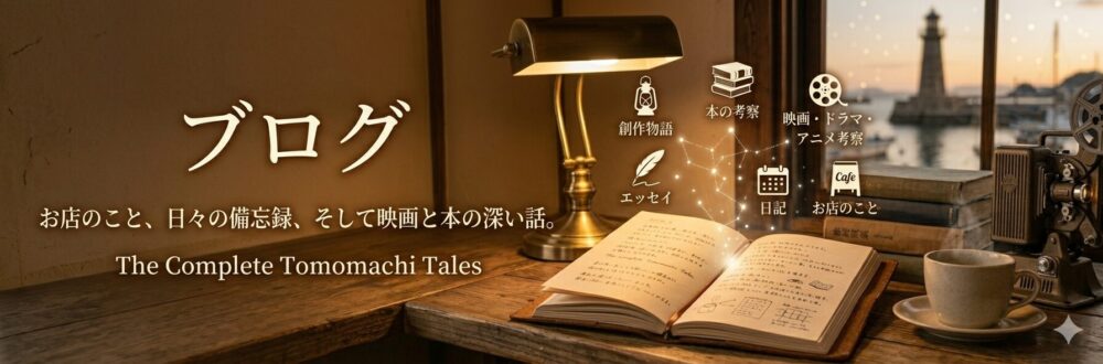 また、ただの業務日誌ではなく、店主が愛してやまない「文化」の香りもたっぷりと詰め込みました。 古い名作映画やドラマ、アニメーションの世界に深く浸り、物語の裏側を考察する時間。静かにページをめくり、本の中の言葉と向き合う読書の記録。 ときには、日常のふとした瞬間に立ち止まって考えたことをエッセイとして残したり、そこから想像の翼を広げて小さな物語を創作してみたりもしています。